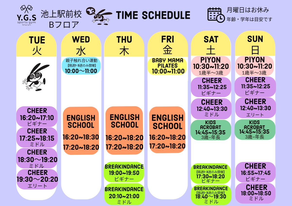 ①上記カレンダーで体験したい日付とクラス、時間を確認(年齢などの制限があるので確認してください)